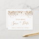 A girly and trendy Save the Date card for a 40th (or any age) birthday party. A stylish white background decorated with faux gold glitter dust. Personalize and add a date and name and text. Golden colored letters. The text: Save the Date is written with a large trendy hand lettered style script.