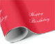 White lettering is featured on a red background on this birthday, gift wrap for anyone.