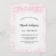 For an elegant 21st (or any age) birthday. A stylish white background. Decorated with pink faux glitter, sparkles. Personalise and add a name, age and party details. The name is written with a hand lettered style script