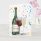 A green bottle of wine with red and white wine labels on a white background, featuring colourful party confetti and a humourous age quote on the label.