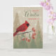 Celebrate a special day with the spirit of the winter season, featuring a bright red cardinal among trees and snowflakes, bringing cozy seasonal cheer.