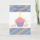 A pretty birthday design with a big pink cupcake and ribbons and soft colours.