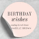 Birthday Wishes | Simple Blush Pink Feminine Girly Classic Round Sticker