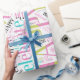 When your BFF is celebrating her birthday, you can be sure her gift will be just as special as she is with one of these designer word cloud wrapping papers created just for her. Choose any background colour you like to accompany the pink, turquoise, green, and black text. Search ID273 to see other ages and additional products with this design.
