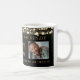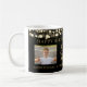 Celebrate any age birthday for him or her with this black and gold commemorative keepsake mug featuring a calligraphy script typography design stating # YEARS IN THE MAKING that incorporates their age and established birth year within the design, personalised with 2 photos (perhaps Then and Now photos), your custom text and accented with string lights. ASSISTANCE: For help with design modification, personalisation, colour change or transferring the design to another product, contact the designer BEFORE ORDERING via Zazzle Chat or makeitaboutyoustore@gmail.com.