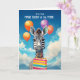 This cute zebra holds a colourful gift bag and has balloons floating behind it to send cheerful birthday wishes to the Zebra lover in your life.