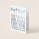 Remind the receiver that birthdays are good for them - the more you have, the longer you live. A Happy Birthday card in silver foil with bold, modern typography.