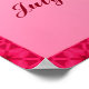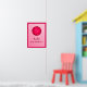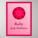 Poster in a digital illustration of a ruby, the birthstone for July, ruby red and light pink, bordered in a ruby crystal pattern