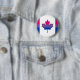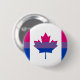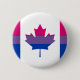 Round Button with maple leaf from flag of Canada in the colors of bisexuality rainbow flag of pink, purple and blue; bi pride lgbtqiap+ design,
