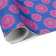 Wrapping paper with a seamless modern geometric flower pattern in the colours of the bisexuality pride flag; a purple, pink, and blue bi pride design
