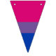 Party bunting banner with bisexuality flag with rainbow stripes of pink, purple and blue; bi pride design