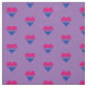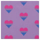 Fabric with hearts design in colours of bisexuality; pink, purple and blue stripes bi pride flag, rainbow love bi pride design on purple background