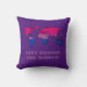 Customisable throw pillow with the map of the world in the colour of the bisexuality pride flag, a design on a pink background; the text 'Let's Change the World' is a template text and can be changed.
