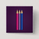 Square Button with pencils in the colours of bisexuality rainbow flag of pink, purple and blue; bi pride lgbtqiap+ design,