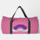 Duffle Bag with bisexuality rainbow stripes of pink, purple and blue; bi pride lgbtqiap+ flag design, "These Are My Colors" template text, by pinkbrickroad