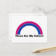 Postcard with bisexuality rainbow stripes of pink, purple and blue; bi pride lgbtqiap+ flag design, "These Are My Colours" template text, by pinkbrickroad