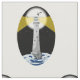 An illustration of Bishop Rock lighthouse. This lighthouse is on the Isles of Scilly of the Cornish Coast. The lighthouse is drawn at night, with a stormy sea and full moon.