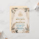 Celebrate your union with a modern Nikkah design featuring earth tones and botanical details. A perfect blend of tradition and boho-chic elegance.This design features a watercolor illustration of a ceremonial archway composed of dried pampas grass, beige roses, and sage green foliage. A subtle geometric lattice pattern in sand tones fills the background within the arch, framing the text. The header displays "Bismillah" in traditional Arabic calligraphy, simulated in a printed bronze-gold color. The couple's names are presented in a bold serif typeface in slate blue, contrasting against the cream background, while secondary details utilize a classic script. This is a flat printed image with a faux gold foil effect, not actual raised material.