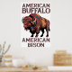 An illustration of a bison wearing a headdress made of colourful feathers.