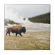 A bison saunters past Old Faithful geyser in Yellowstone National Park in this digital painting, based on an original photograph by Jayne Wilson.