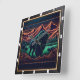 This illustration features a dark, tooled neon colour leather background with a bold bison in a field. A mountain range is visible behind it, rendered with vibrant neon orange and red lines. The grass and the bison's coat are a striking neon green, giving the entire scene a mystical and energetic feel.