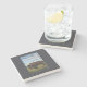 The coasters are gorgeous, a quality feel and heavy weight. They look like a precious archeological find. A rustic stone juxtaposed with a modern floral black and white print. I like the way the print goes slightly imperfect on the cut stone edges giving them a kind-of natural beauty.