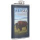 Bison Scene - Delta Junction, Alaska Hip Flask