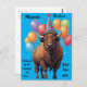 A birthday greeting featuring a majestic American bison in a party hat, offering dry humour about aging and resilience. Perfect for those who appreciate wit and wildlife. generativecontent. The text on the postcard can be edited.