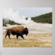 Bison with Old Faithful in Yellowstone Poster