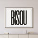 The "Bisou" poster, French for "Kiss," adds romance to any room with its bold, versatile design featuring tall black font on a white background.