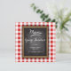 Shown created on 120lb signature matte invite paper, this cute invitation has a Red & White chequerboard table cloth looking border and a bistro style chalkboard in centre where your text is written. Text in classic White for you to personalise with your information, we have sample text shown. Red colour on back with room for additional text if you desire. Customise this item.