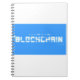 A big text message on a digital light blue screen with a heavy distortion glitch fx: Blockchain.