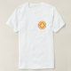 This t-shirt features a plain white background with the Bitcoin symbol places over the left side of the chest. The signature Bitcoin symbol is coloured orange with a dollar sign-like "B" printed in the centre.