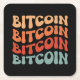 Bitcoin Wavy Text Stylish Crypto Typography Design Square Paper Coaster