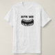 Bite me! funny white t shirt with sharp teeth. Fun summer tee for home, sports, fishing and more. Humourous clothing for men, women and kids.