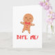 Cute smiling gingerbread man and the words BITE ME! in red.
