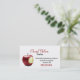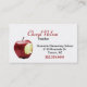 Stylish yet simple teacher's business card done in white, with fun graphics of a bitten apple, on the left side of the card. Text in black and red is ready to personalise with your information. The back of the card is set up as a parent / teacher conference card, for double duty use.