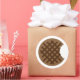Bitten waffle cookie stickers and envelope seals / sealers. Personalise with your own text or logo. Silhouette drawing of cookie bite.