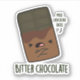Bitter Chocolate Funny Candy Pun features a cute bar of chocolate who's got a biff with milk chocolate. Perfect pun gift for family and friends who love cute food chocolate puns.