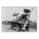 An eccentric inventor poses with a bizarre propeller powered vehicle. 1922.