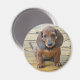 Cute baby dachshund puppy magnet. She's nine weeks old and looking hopefully at you. Great gift idea.