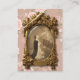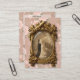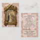 The front showcases a realistic, vintage-inspired illustration of the young saint in prayer, encased in a sophisticated metallic gold floral frame. This sits atop a timeless background of beige wallpaper adorned with delicate light pink roses, evoking a sense of traditional devotion.