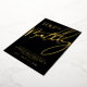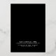 The back features a solid black background with the date, address, and RSVP details in clean white fonts for a sleek, modern contrast.