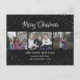 Custom black photo Christmas postcards featuring a photo collage and a beautiful hand-lettered script title with stars and greenery. Easily personalise this black Merry Christmas postcard with your images, text, year and a family name. You can also change the background and font to any colour.