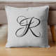 Black 3D Calligraphy Initial Letter | Pastel Grey Cushion