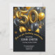 This is a modern looking black theme 50th birthday invitation card design with golden balloons and glittering. The design is depicting the complete vibe of a fun and party. You can customise the design as per your choice by changing names, address and other details.