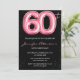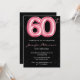 Black 60th birthday invitations Balloon Glam Pink Glitter Sparkle