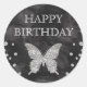 Black Acrylic & Silver Glitter Butterfly Birthday Classic Round Sticker
