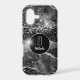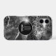 Your monogram and your name are in gleaming silver on a black circle banner at the centre of this phone case. The banner is framed in thin silver and placed on a sparkling faux diamond and agate black background with star lights scattered about. Elegant!