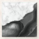 Black Agate Silver Glitter White Faux Marble Glass Coaster